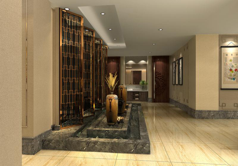 設(shè)計(jì)理念: 公司為企業(yè)做的辦公室裝修設(shè)計(jì),整體以暖色調(diào)為主,燈光顏色的選用和地板的使用起到了與之相互照應(yīng)的作用,更襯托出整個(gè)辦公空間的暖色調(diào)。在顏色方面整體選取暗色調(diào),給人以莊重嚴(yán)肅之感。在燈的裝飾上以及天花的花紋上又看出了中國(guó)式的風(fēng)格。
