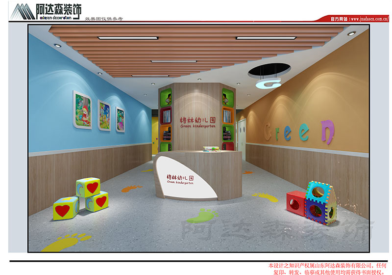 設計理念: 格林幼兒園室內裝修設計效果是一個綜合性的項目,其宗旨是為孩子創造一個安全、舒適的學習生活環境。在進行裝修的時候需要注意細節上的點,需要選擇綠色安全的材料。打造一個溫馨、活潑、富有啟發性的室內空間。整體而言,格林幼兒園室內裝修工程體現了對幼兒的關愛和對教育環境的重視。