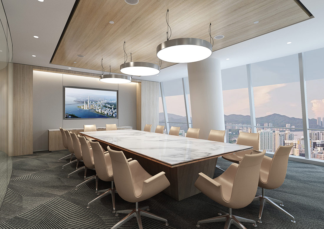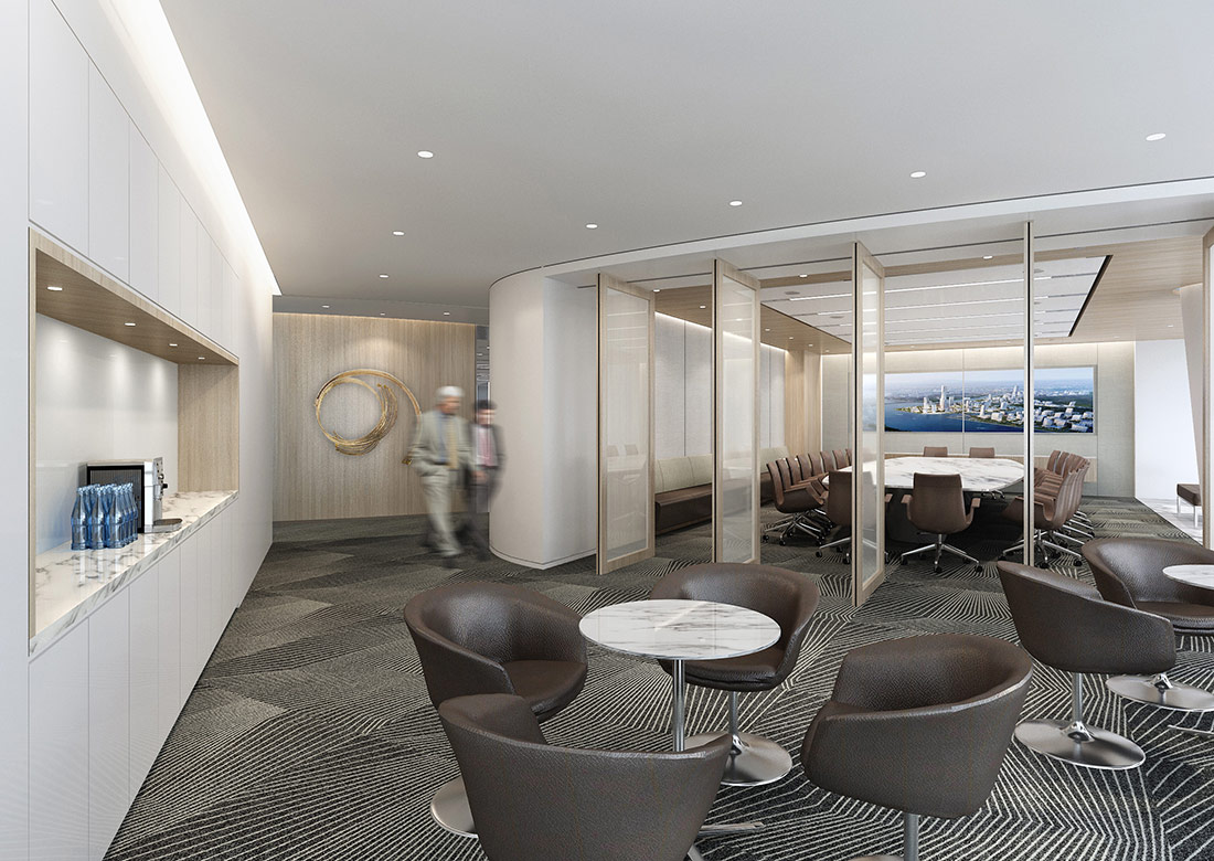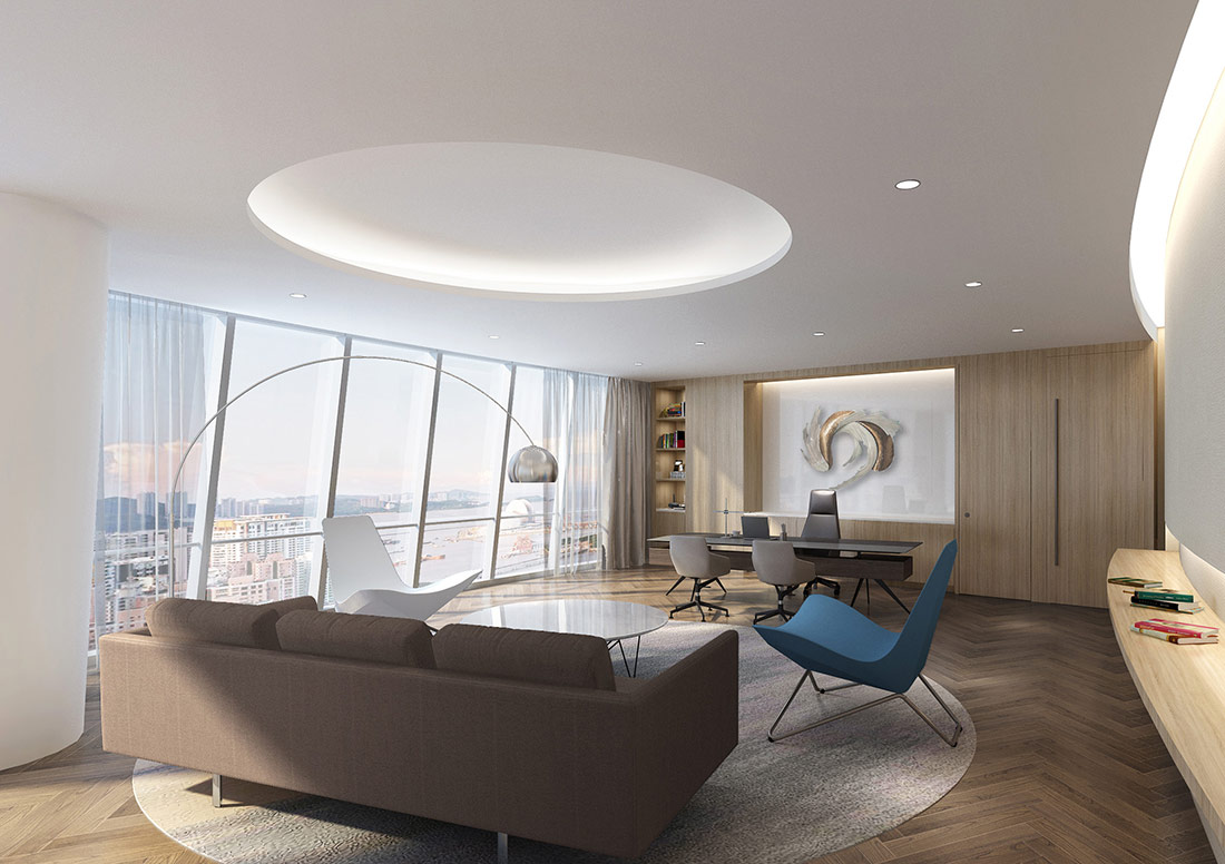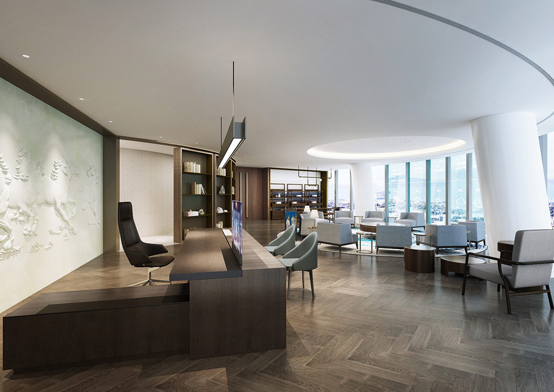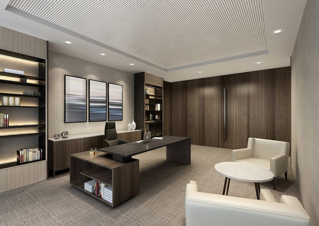 設計理念: 大型辦公室裝修效果圖展現了一個集于現代、高效和舒適融為一體的辦公環境。辦公室裝修設計時利用了大面積的特點將開放式辦公區域與會議室等其他區域巧妙的融合到了極致,既保證了團隊間的緊密合作,也兼顧了員工們的休閑辦公。使用落地窗進行搭配,讓整個辦公室顯得更加明亮整潔。辦公室整體采用了大面積化設計,讓客戶進門后感覺到豪放、大氣、高端。利用高效的照明系統與通風系統能夠確保室內光線的充足與空氣流通。